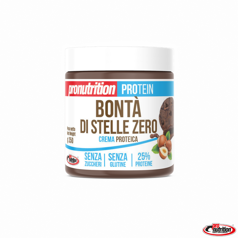 Crema zero bontà di stelle è una crema spalmabile a base di proteine isolate del siero del latte (WPI). La sua formulazione apporta ben il 25% di proteine ad alto valore biologico e zero zuccheri aggiunti. Grazie alla sua spalmabilità ed al suo sapore di cioccolato con un cuore di biscotto al cioccolato, intenso e delicato la crema bontà di stelle è perfetta per un gustoso snack, per una colazione golosa, per farcire i nostri cornetti keto oppure i nostri pancake, sempre in linea con uno stile di vita sano ed equilibrato con il giusto apporto di calorie e proteine. Ideale in tutti i momenti della giornata quando si cerca qualcosa di dolce. Crema zero bontà di stelle, tutto il gusto senza il peccato.